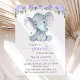Cute Elephant, Purple Flowers, First Birthday Invitation