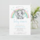 Cute Elephant Rainbow Blue Baby Shower Invitation