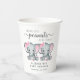 Cute paper cups for your twin girls baby shower with "Two Sweet Little Peanuts Are On Their Way" written in grey typography and a script with swashes and two pink watercolors of baby girl elephants. Personalize the mother-to-be's name and shower date in simple grey typography.