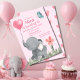 Invite all your family and guests with this cute and girly birthday party invitation. Watercolor elephant holding a heart shaped ballon, while a butterfly and flower complete the scene.