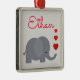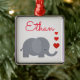 Cute elephant with hearts personal name metal ornament