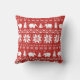 Cute Elephants Christmas Holiday Pattern Red Throw Pillow