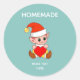 Cute elf holding a heart and Homemade text on light blue Stickers. Text can be personalized.