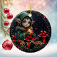 Cute Elf Child in Green Hooded Coat Ceramic Ornament