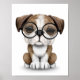 Cute English Bulldog Puppy Wearing Glasses White Poster