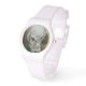 I was pleasantly surprised by the good quality of this watch. It's an easy size to wear on a small wrist and both the band and the watch are well made. I also liked the translucent case the watch is packaged in. The printing is crisp and clear and shows off my Create With Photos oyster flower design well.