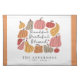 A cute illustration of pumpkins with the phrase "Thankful Grateful Blessed" accents this cloth placemat. It is personalized with a name and established date.