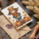Cute Fall Autumn Scarecrow with Pumpkin and Leaves Card