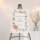 Celebrate the arrival of your little pumpkin with this cute fall themed baby shower welcome sign! Featuring a charming frame design with pumpkins, tiny wildflowers, twigs and leaves, this welcome sign perfectly captures the warmth and coziness of the autumn season. The warm colors and playful font will surely set the tone for a memorable and festive celebration.