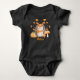 This is an adorable baby bodysuit for fall. The design features a cute hedgehog in fall colors with a pumpkin, mushrooms and fall foliage. The bodysuit can be personalized with the baby's name.