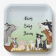 Celebrate a baby shower, baptism, christening or naming ceremony in style with this cute farm animals friends square paper plate featuring a donkey, a goose, a hen and her chicks, a baby goat, a piglet, a rabbit, two lambs, a border collie, a black cat and a cow and her calf. The text can be personalized however you like.