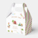 Thank your wonderful guests with this cute farm-themed birthday thank you favor box featuring a red barn, green tractor, colorful balloons, bunting, and adorable illustrations of a horse, cow, pig, duck, and rooster. Perfect for a young boy or girl who loves animals, this favor box can be personalized with your own text. Other matching items available.