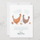 This cute and trendy baby shower thank you card design features a chicken illustration, with a matching blue farm pattern on the back, with flowers, chicks, and eggs. The thank you card can be personalized with the parent's (or child's) names. The perfect gender neutral farm themed addition to your co-ed couples baby shower.