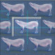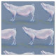 Cute pink pig with large ears over her eyes patterned fabric. Ideal for quilting and other sewing projects. Drawing and design by Sarah Trett.