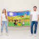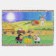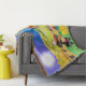 Give your child this fun and adorable throw blanket! Design features a hen and her baby chicks fighting over a worm, a tractor full of hay, and a farmer delivering hay to his two little black and white sheep. With all the little barnyard animals, your kids would love this!
