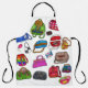 A cute illustrated marker art pattern of purses, bags, totes, jelly bags, knapsacks, nostalgia mini backpacks, handbags, messenger bags, sacks, designer fashion purse styles and more fun hand drawn illustration artsy design deluxe fun cute kitchen cooking or outdoor grilling apron. Get an epic cartoon style apron today.