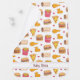 A cute doodles pattern of popular fast food items which include burrito, slice of pizza, submarine sandwich, fried chicken, hamburger and French fries each with kawaii expressions! Personalize with name of baby in text template provided.