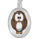 Cute Fat Owl Cartoon Adorable Bird Silver Plated Necklace