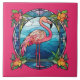 cute faux stained glass pink flamingo ceramic tile