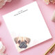 Show off your love for pugs with this adorable, personalized notepad! A charming illustration of a fawn pug peeks out from the lower-left corner, set against a clean, minimalist white background. This design offers space to add your own custom text, making it a unique and thoughtful item. Perfect for jotting down notes, to-do lists, or reminders. A must-have for any pug enthusiast!