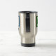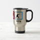 Peace Love Fencing travel mug. A peace sign, heart, and a fencer practicing fencing.