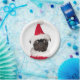 Cute Festive Christmas Black Pug Santa Hat Paper Plates
