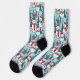 Watercolor cozy blue and red snowmen in a winter wonderland Christmas socks.