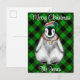 Cute festive holiday Penguin green black plaid Postcard