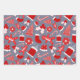 Cute Festive Red Illustrations Christmas Pattern Wrapping Paper Sheets