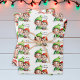 Cute Christmas gift wrap with boy and girl watercolor elves green and red retro vibes.