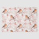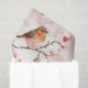 Cute finch bird on snowy winter tree & red berries tissue paper