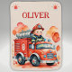 Personalized cute fire engine truck and firefighter