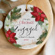 Celebrate your first holiday season as an engaged couple with this Cute First Christmas Engagement Poinsettia Flower Ceramic Ornament. Featuring a festive poinsettia flower surrounded by holiday accents, this ornament symbolizes love, joy, and the excitement of your engagement. Perfect for adding a cheerful and romantic touch to your Christmas tree, it can be personalized with names or a date to create a keepsake you will treasure for years.