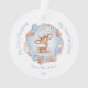 Christmas ornament with a Cute Deer in gingerbread Christmas wreath in blue and beige. Easily personalize the text - Kate Eden Art