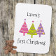 A cute and lovely Christmas baby blanket with pink, purple, yellow, and green Christmas trees, the baby's name, and "first Christmas" text. Personalize the blanket with the baby's name or any other text you desire.
