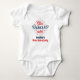 Let everyone know your baby is a star spangled cute in this first Fourth of July baby bodysuite. Star Spangled cute is written in red and blue and surrounded by red and blue stars and banners. Her name is written below in blue and then first 4th of July in red. You can easily edit the text, change its color and font.