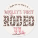 Cute First Rodeo Pink Personalized 1st Birthday Classic Round Sticker