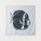 Cute fish tapestry with a monochrome digital illustration depicting a funny angelfish with eyelashes drawn with digital ink. Fish do not have eyelashes, yet this has made itself fancy.