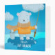 A cute blue and orange school binder for kids with an adorable cartoon polar bear back from a fishing trip .
