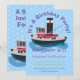 Cute fishing trawler boat cartoon illustration invitation