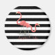 Cute Flamingos, Black, White Stripes Personalized Magnet