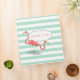 Adorable flamingos in love on mint green stripes with your name.