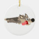 Lightweight, smooth, pure white ornament with nice sheen. Perfect size to be seen from across the room ... and to attract closer inspection! Price was great for ordering enough for the whole family! Clear, bold black design just as requested. Matches the order exactly. Just so nice!