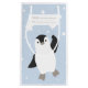 Cute illustration of a penguin holding onto a balloon on kids Christmas gift bag.