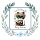 Cute Floral Cat With Glasses and Book Bookplate