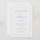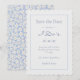 Chic, fresh and youthful with a playful tone. This Save the Date card features a set of trendy and modern fonts, against a off-white background. The back of the card wears a playful floral blue and white pattern. Cheeky and fun. Personalize to make it your won.