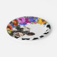Cute Floral Fun 'Holy Cow' themed birthday paper plates. Design features a modern cow print background, decorated with bright and bold colorful watercolor flowers, the cutest cow.