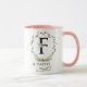 Give this elegant Monogrammed coffee mug with letter "F" with style and blush watercolor flowers and greenery to someone special or treat yourself drinking a delicious coffee or tea with a design that brightens your day. Personalize the coffee mug by adding your name or custom text.