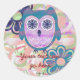 Adorable, stylized owl and flowers, drawn with vectors and textured with a faux-painted design.