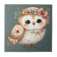 Cute Floral Owl with Bow Ceramic Tile